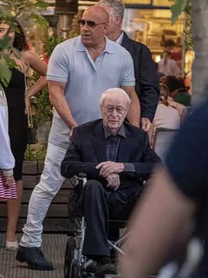 On a warm evening in London, Vin Diesel was seen carefully pushing a wheelchair through a restaurant patio, his familiar calm presence drawing quiet admiration. Sitting in the chair was none other than Sir Michael Caine, 92 years old—one of cinema’s greatest living legends.