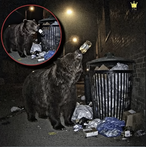 At first, people thought it was just a strange coincidence. Trash bins were being overturned, and the empty bottles of strong liquor left outside taverns kept disappearing. Then one night, a man walking home from work saw it with his own eyes — a massive brown bear, holding a vodka bottle in its jaws, tilting it upward as if taking a swig.