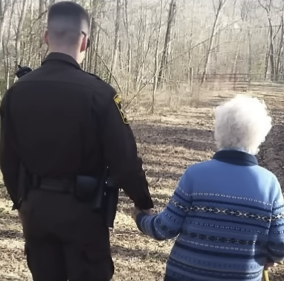 Forty minutes later, Officer Morrison spotted movement near a grove of leafless trees. It was her—frail, white-haired, her sweater dotted with twigs, walking as if nothing was wrong. When she saw the uniformed men, she smiled.