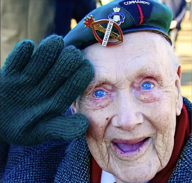 He wore a green beret, his jacket neat and pressed, his medals glinting faintly under the sun. His eyes—pale, clouded, and distant—seemed to look at something far beyond the present moment.